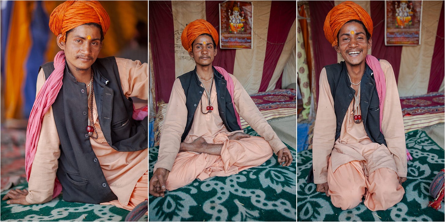I met a sadhu, Ramesh, on the outskirts of the main festival grounds. The image at the top of this edition comes from our brief encounter.