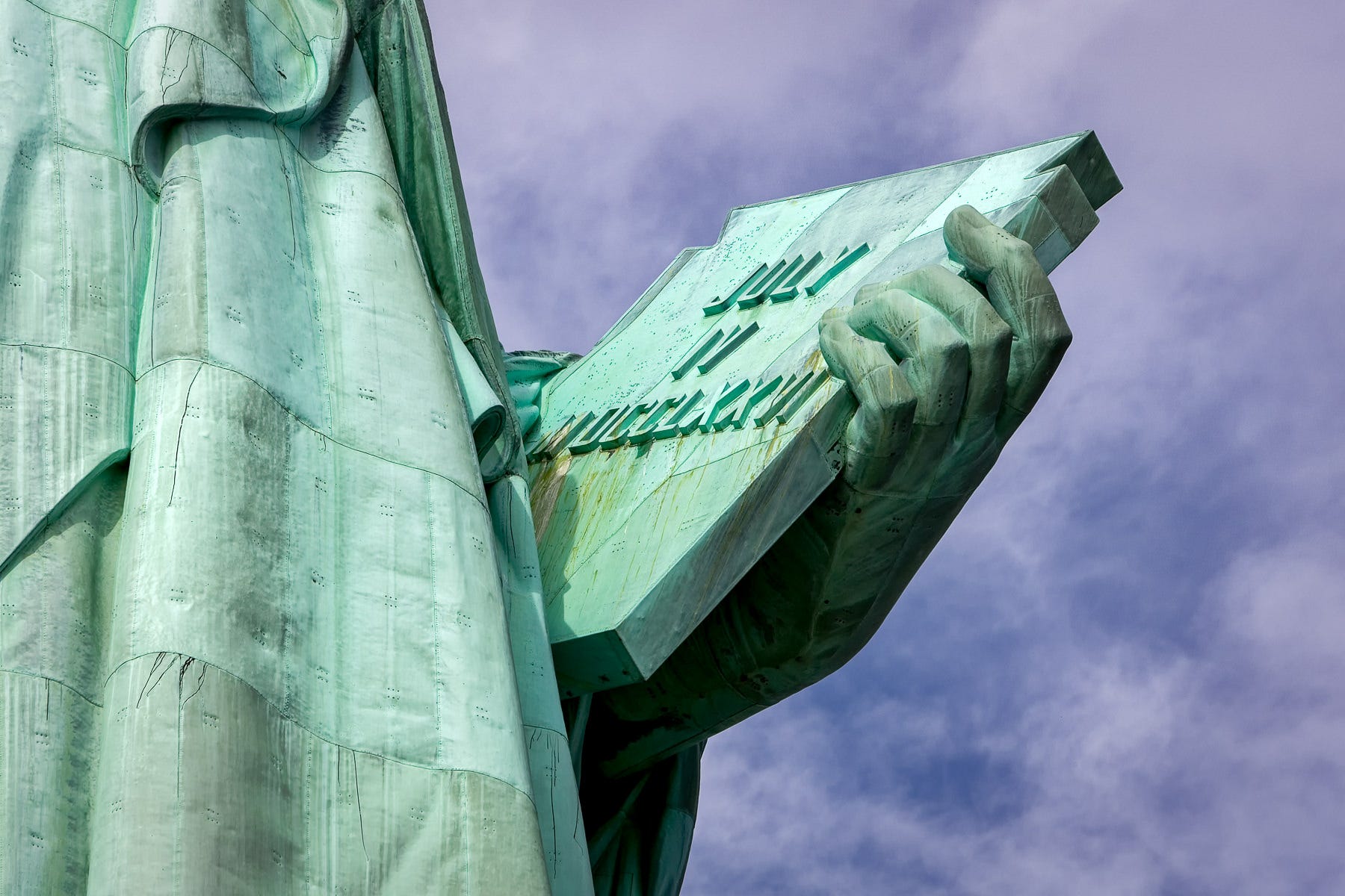 Liberty’s steadfast hand holding the tabula ansata inscribed with the date of the US Declaration of Independence is a hopeful image. Life, liberty, and the pursuit of happiness. These truths remain self-evident and, somehow, this close-up of the Statue of Liberty reassures me that those aspirations will endure.