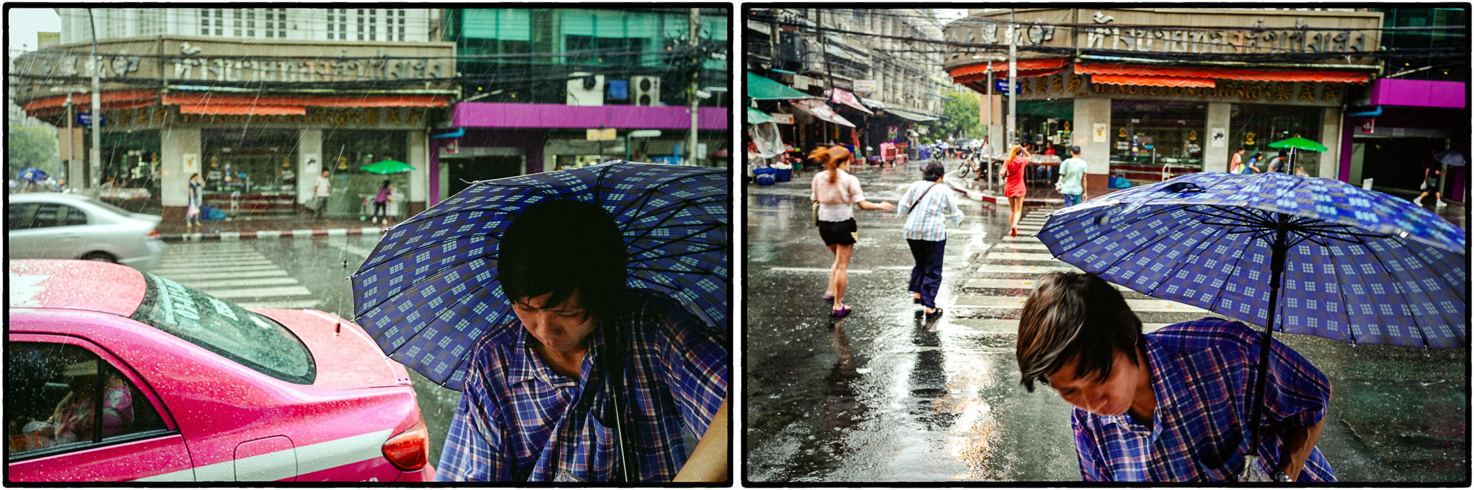 When the rain comes – always suddenly and at full force – people move differently. Elegance and poise are immediately sacrificed in favour of a hurried, crosswalk-dashing, puddle-hopping sprint for cover.