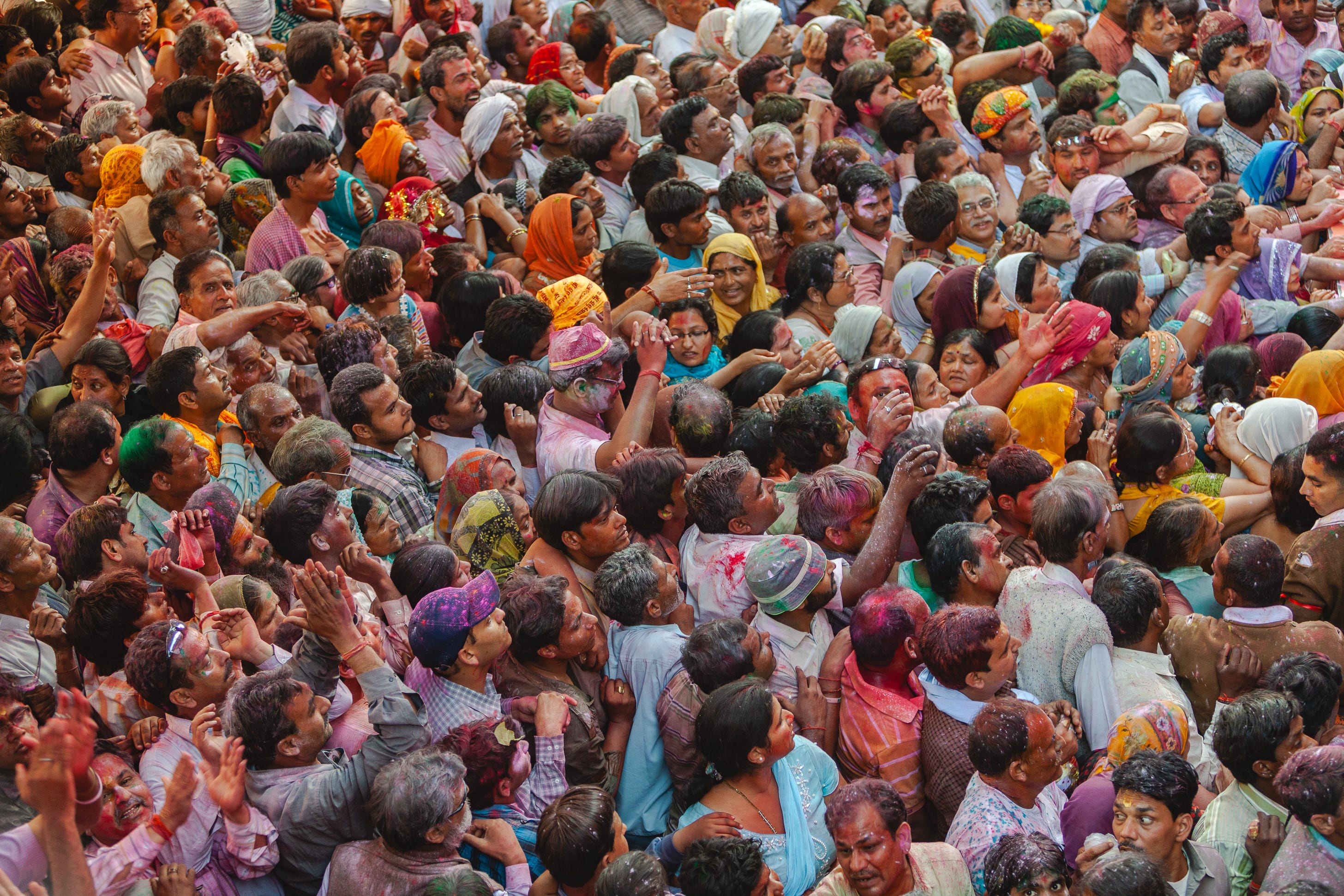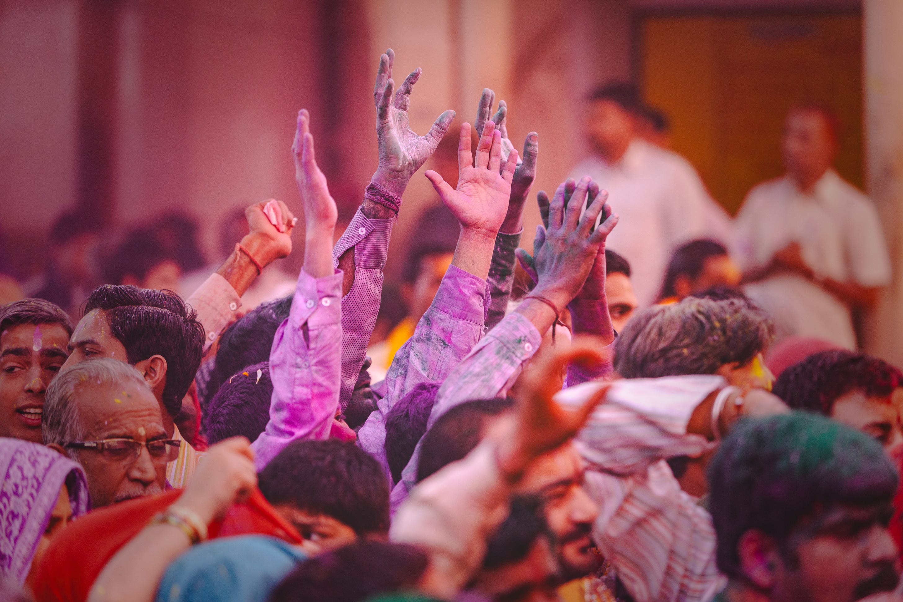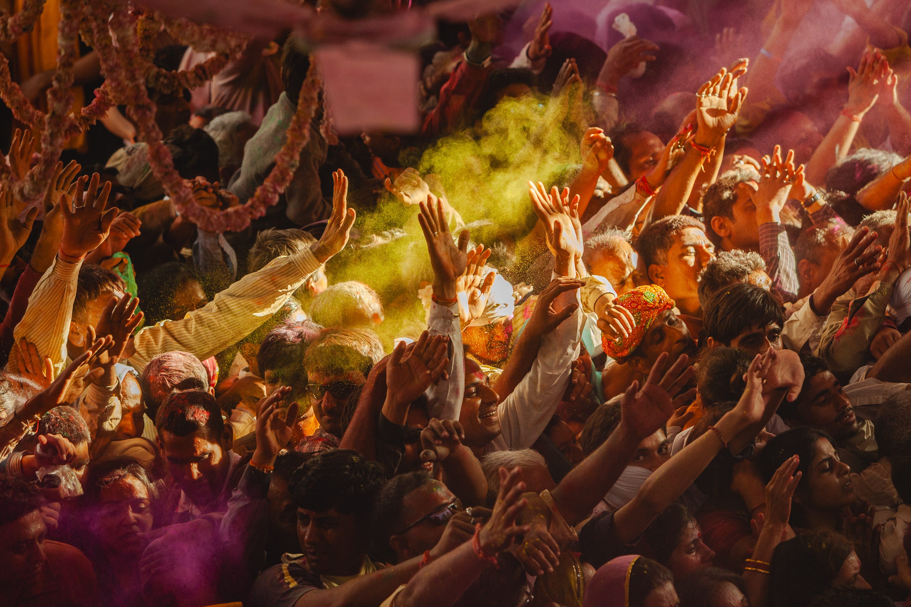 There’s too much coloured powder in the air for my camera to auto-focus and barely enough space to raise my arms, let alone check the camera settings. There’s no time, no space, no pause, only this moment.